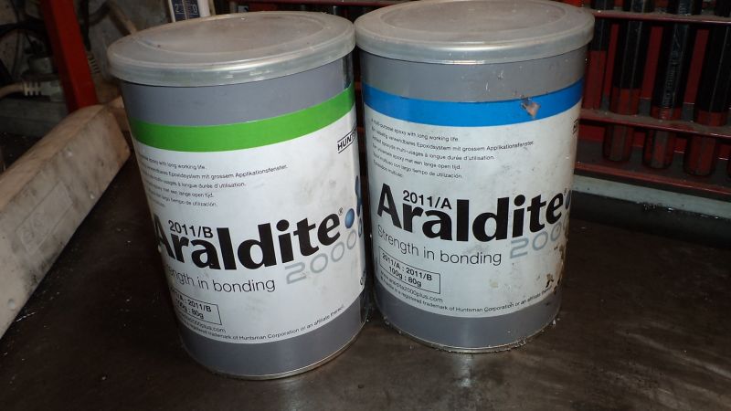 La couleur verte dénote un collage epoxy.