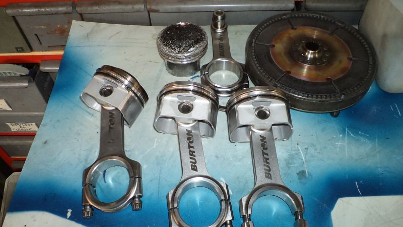Notez que le piston a plutôt bien tenus(CPS, italien, alu forgé marque proposée par Mecaparts pour nos autos. Un piston coulé aurait très certainement été pulvérisé dans l’aventure...