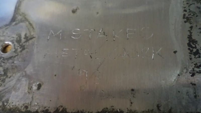 Comme un clin d’oeil du passé, ce panneau découvert lors du démontage comporte la signature gravée à la main du restaurateur précédent, un certain M.Stakes, de la société Metalwork en 1993.