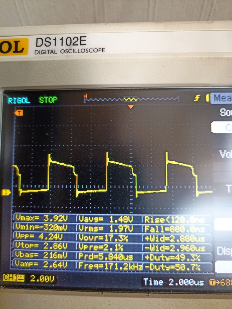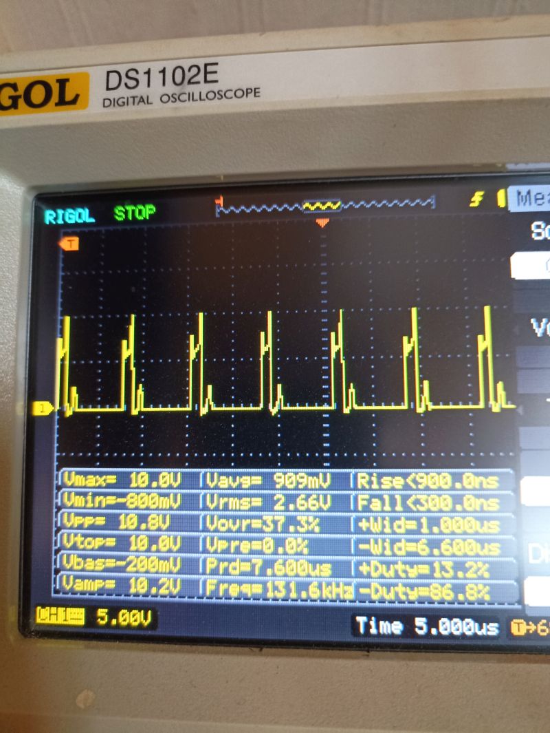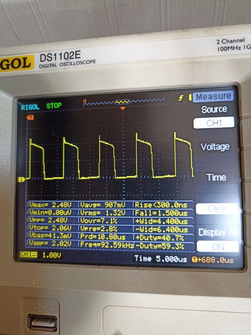 Avec un oscilloscope branché sur le + led, on doit obtenir les images ci-dessus.