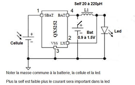 Circuit du bas: QX5253 à 8 pattes, self de 50µH, pour gros consommateur.