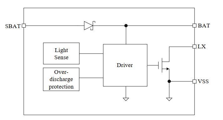 La lumière ambiante baissant, quand la tension de la cellule descend à 0.3V, la borne 2 LX s'active.