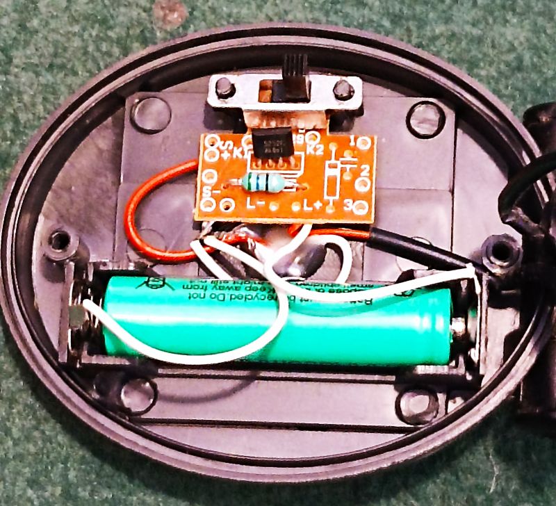 La tension de batterie étant limitée à 1.2V, la led connectée en série avec la batterie est éteinte.