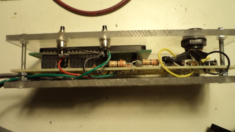 Vue de coté : noter la simplicité de réalisation du "boitier", en réalité deux chutes de Plexiglas de 150X60X4mm.