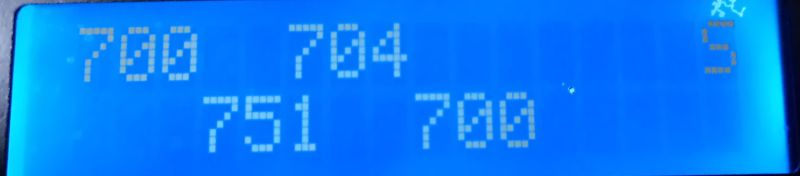 L’affichage est en mm de mercure, ici environ 700 pour la pression atmosphérique( on note que le capteur N°2 affiche 751 car il a été légèrement endommagé..).