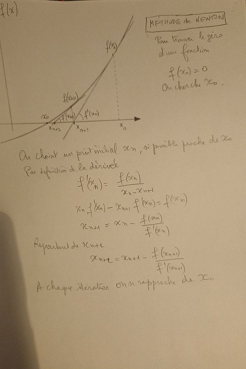 "La méthode de Newton, qui utilise la valeur de f ainsi que la valeur de la pente de f, est, quand elle converge, significativement plus rapide (convergence quadratique)."