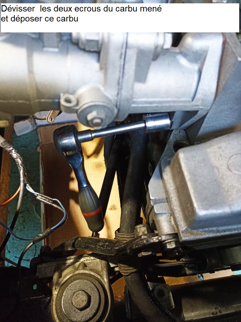 -Déposer le carbu mené en le dégagenat de la commande de synchro. Cette dépose facilite l’accès au carbu menant