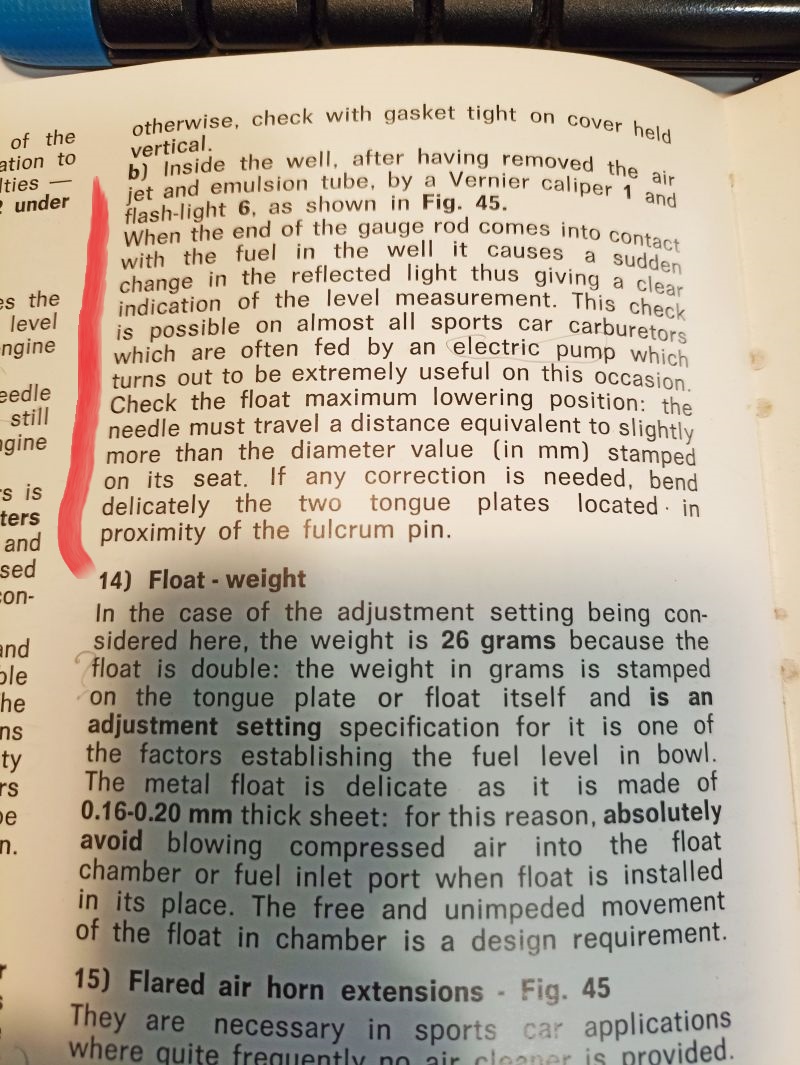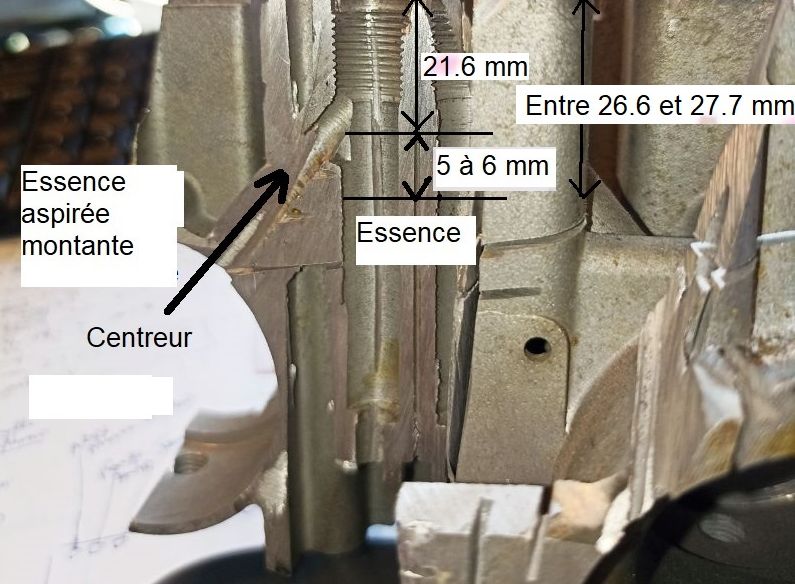 L'objectif est donc de mesurer de 26.6 à 27.7 mm entre le haut de la cuve et le niveau d'esence.