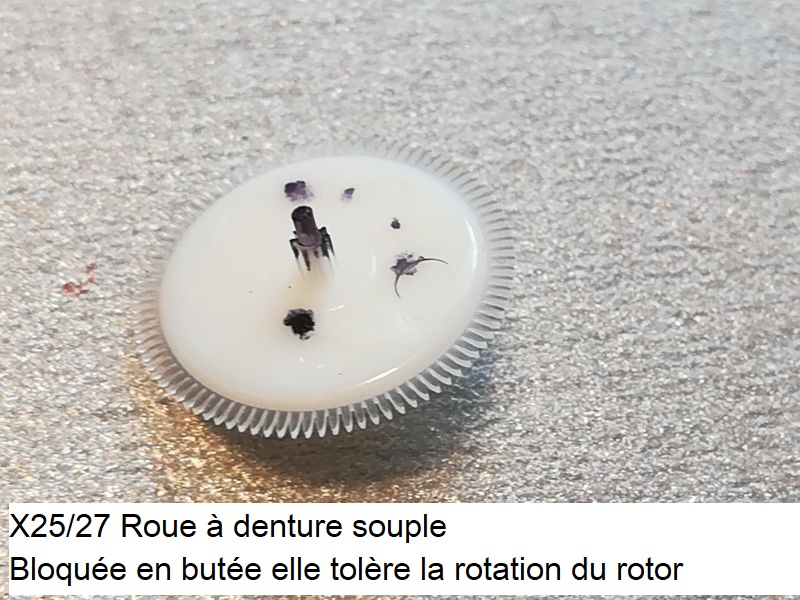 La roue de l'axe comporte un téton qui vient buter sur la zone en rouge