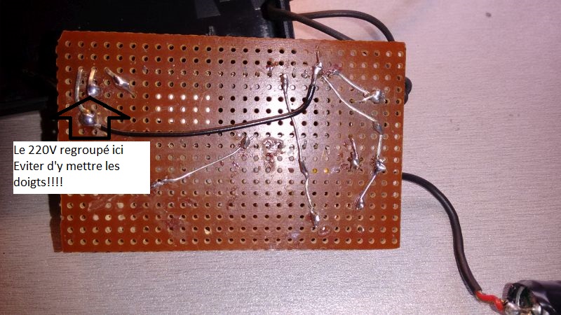 Vu le nombre restreint de composants on utilise un morceau de plaque perforé et on soude les composant point à point.