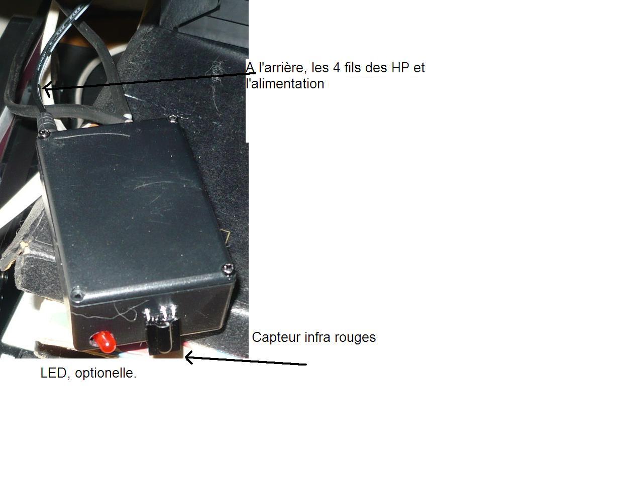 Le capteur infrarouge est placé sur l’avant du boitier, ses trois pattes passant à travers trois trous.