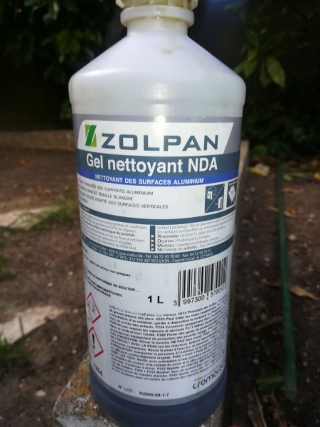 Il s’agit du Zolpan NDA en photo. Essayé sur carbu, jantes, bloc moteur (alu). Efficace en 5 mn, et on lave à l’eau. Doit contenir pas mal de soude mais brûle modérément les doigts. Eviter l’acier qui a tendance à rouiller.