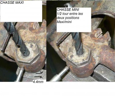En résumé, on dispose d’un peu plus de 4° de variation d’angle de chasse au moyen de l’excentrique.