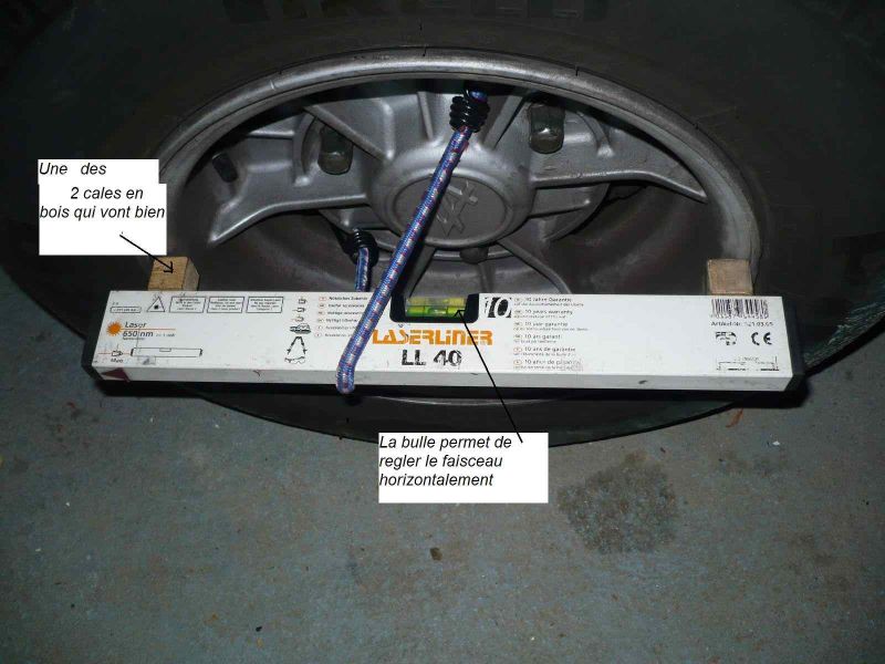 1 On utilisera ici la roue AVd. Fixer le laser, tracer le spot avant et le spot arrière.