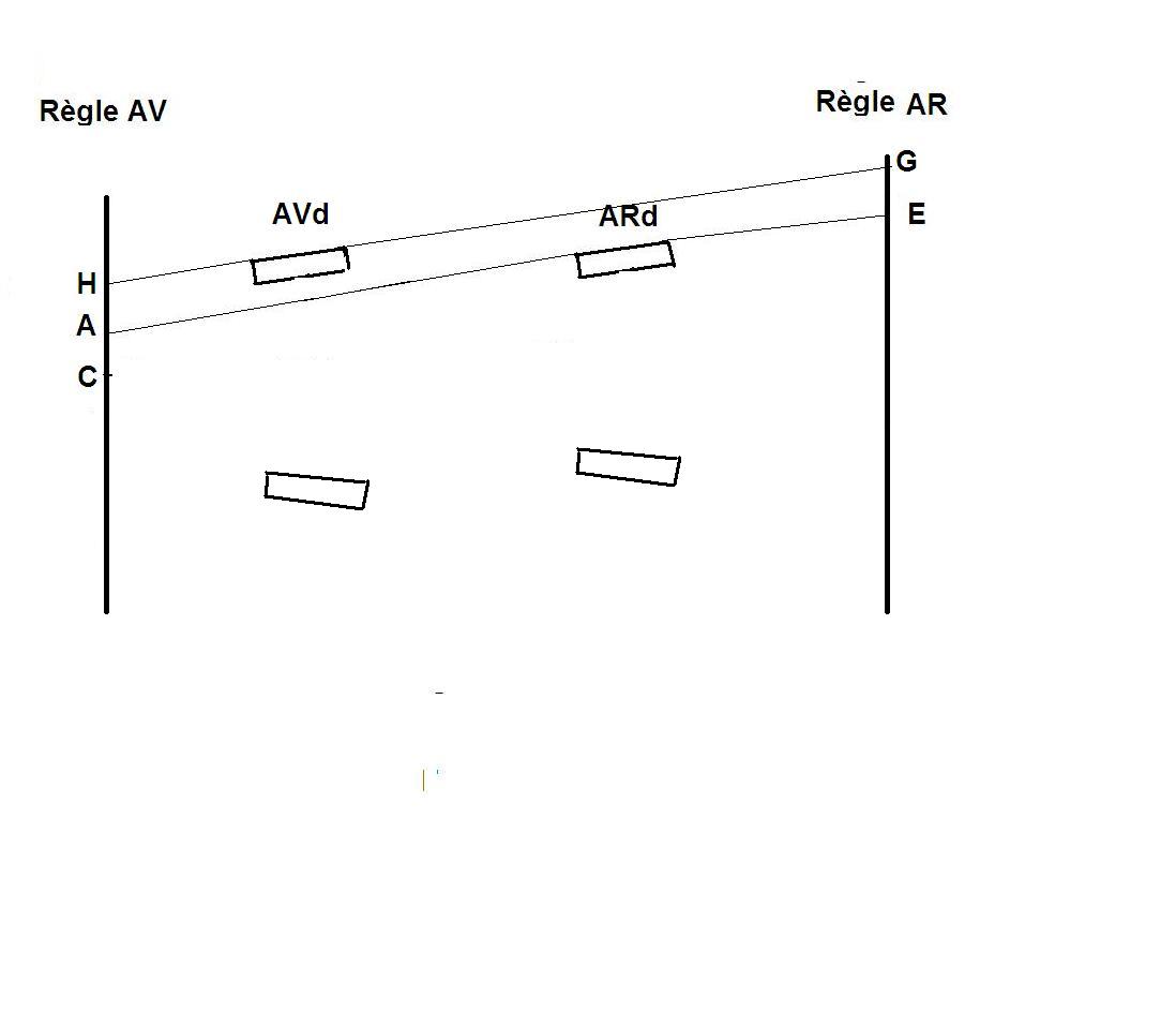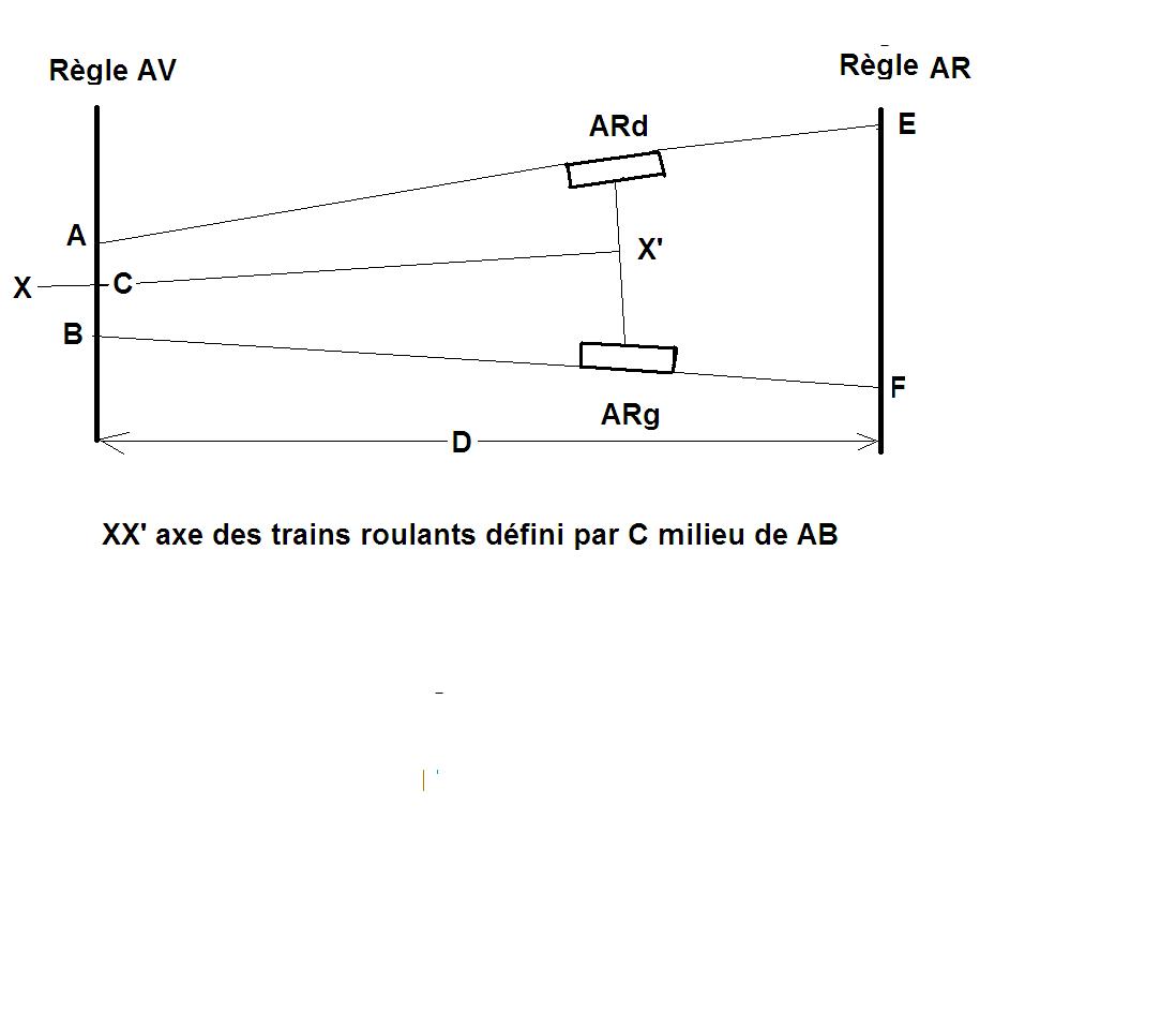 On peut mesurer aussi le train arrière mais l’inconvénient du procédé est que, contrairement à la méthode du laser horizontal (voir ci dessus) on ne peut aligner les deux trains.
