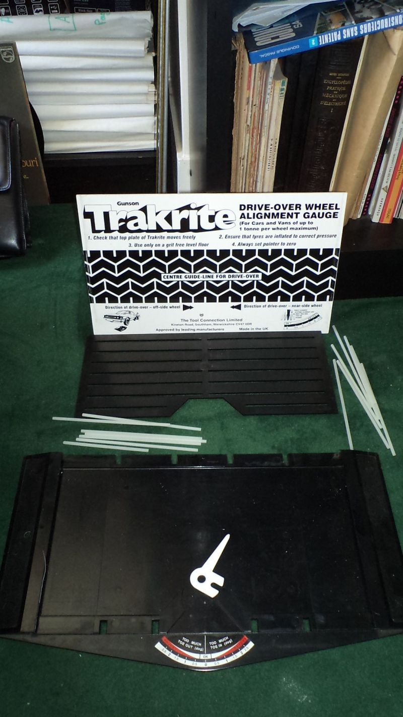 Cela étant tu m’apprends qu’il existe de jolis petits lasers pour un prix dérisoire, je vais foncer chez Lidl ! Et le petit trépied aussi ? Je découvre aussi un concurrent du Trackrite de Gunson, le Trackace. Effectivement, pour la mesure du parallélisme ces appareils sont idéaux. Peux tu mettre une photo de ton engin avec les deux miroirs ?