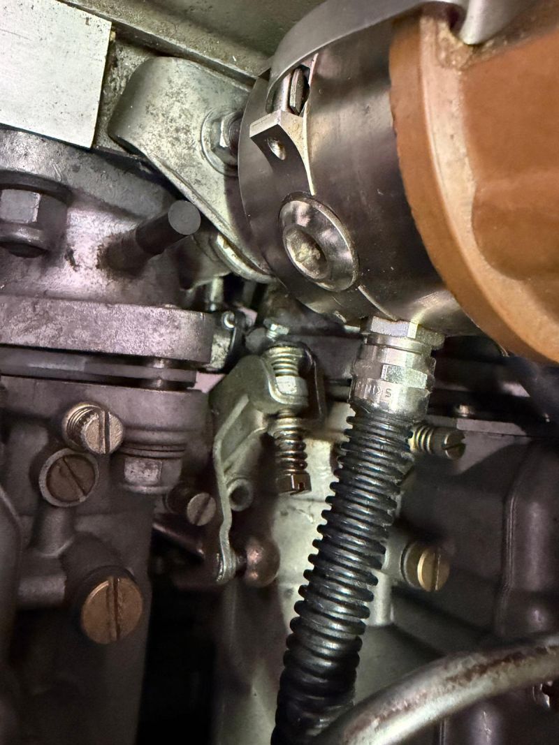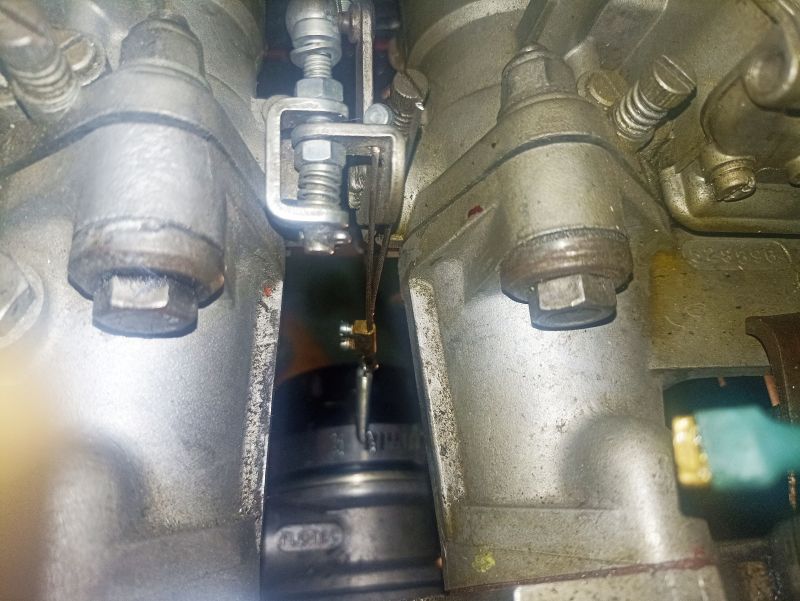 Dans ce montage, le ressort de rappel est devenu quasi invisible, se situant sous le carburateur.