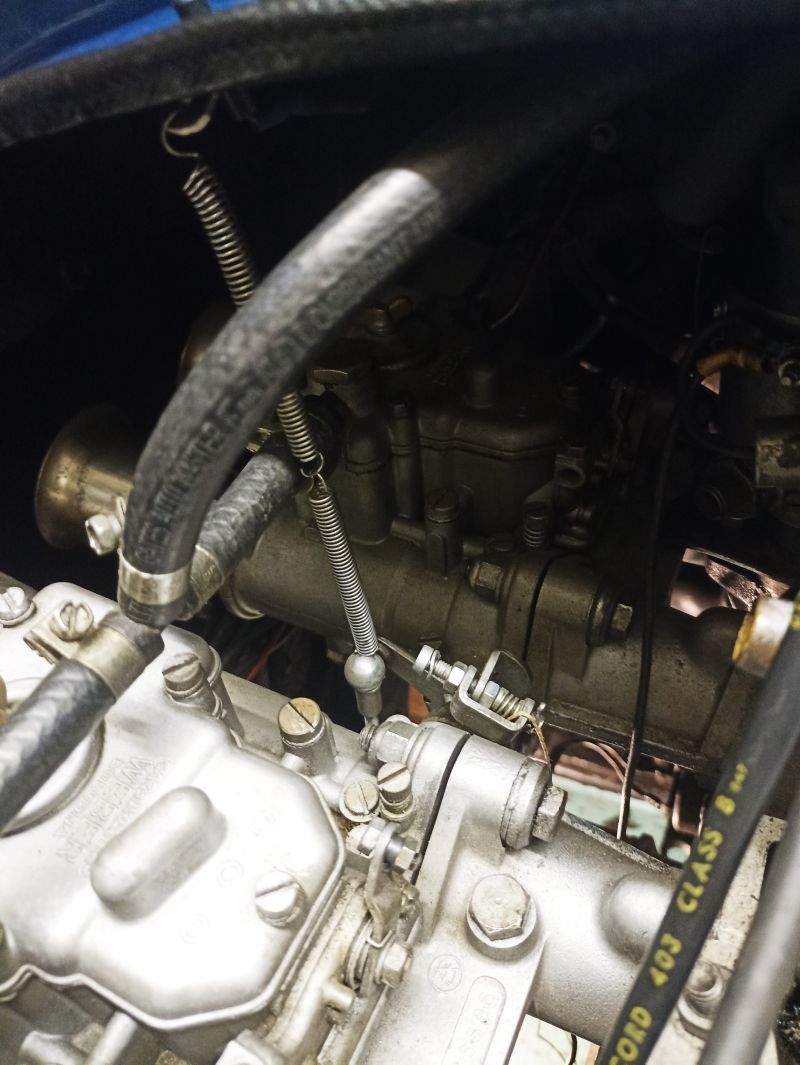 Ce ressort est très visible lorsqu'il est accroché au dessus du carburateur.