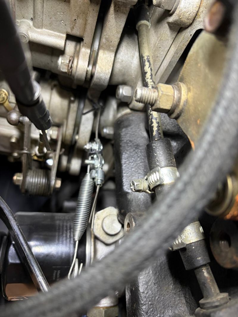 Ce ressort est très visible lorsqu'il est accroché au dessus du carburateur.