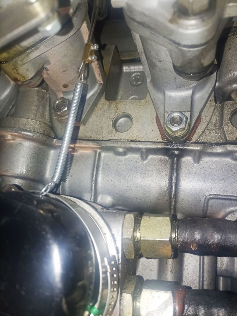 Dans ce montage, le ressort de rappel est devenu quasi invisible, se situant sous le carburateur.